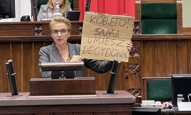 W październiku 2020 r. posłanka Joanna Scheuring-Wielgus wraz z mężem weszła do kościoła podczas mszy i w wzniosła transparent „Kobieto, sama umiesz ...